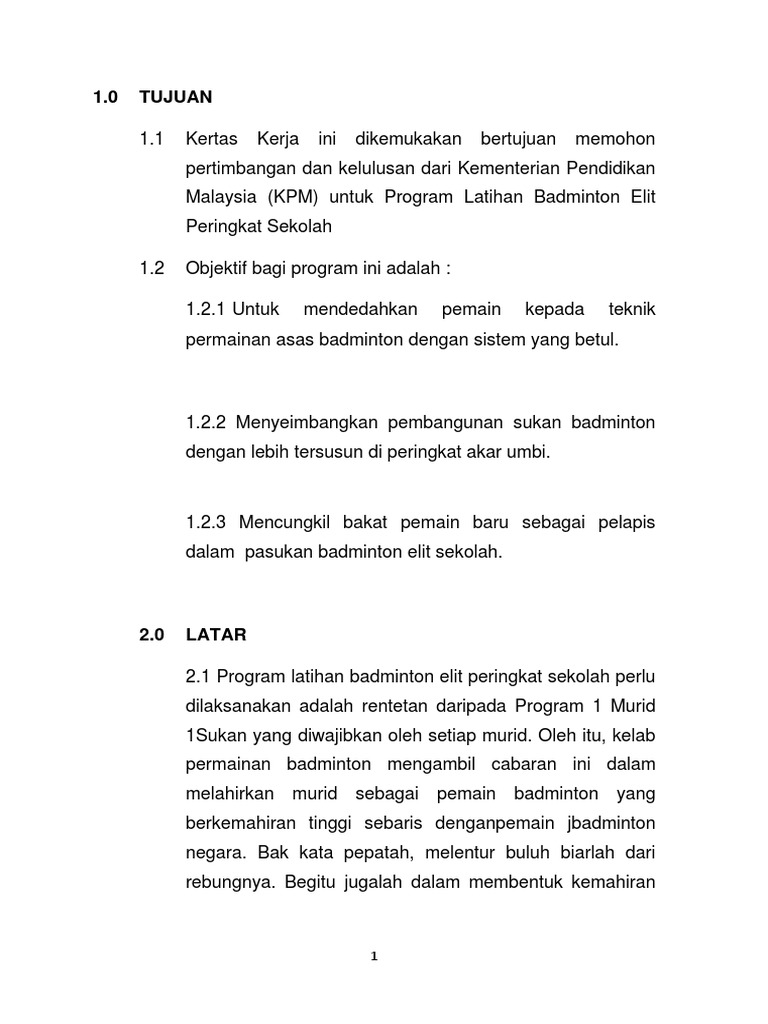 Kertas Kerja Kelab Badminton 2017 Pdf